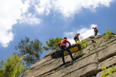 A co w przypadku, jeśli jest się świadkiem poważnego urazu – na przykład złamania ręki lub nogi w wyniku upadku z wysokości? Oczywiście takiej osobie należy pomóc. Już wiesz, jak postępować ze skręceniem lub z raną, ale co w przypadku złamań? W przypadku konieczności transportowania poszkodowanego podstawową zasadą jest unieruchomienie kontuzjowanej kończyny, co zmniejsza ból i ryzyko dalszych uszkodzeń, związanych z przemieszczeniem kości. Do tego celu najlepiej użyć szyny typu splint – małej i lekkiej, którą zmieścimy w plecaku. Jeśli jednak pomoc specjalistycznych służb jest już w drodze (zakładając, że nie zapomnieliśmy jak najszybciej powiadomić GOPR o wypadku), a złamanie nie jest otwarte, to nasze doraźne działania mogą ograniczyć się do zapewnienia poszkodowanemu komfortu termicznego i pilnowaniu, by jak najmniej sią poruszał – zwłaszcza kontuzjowaną kończyną.